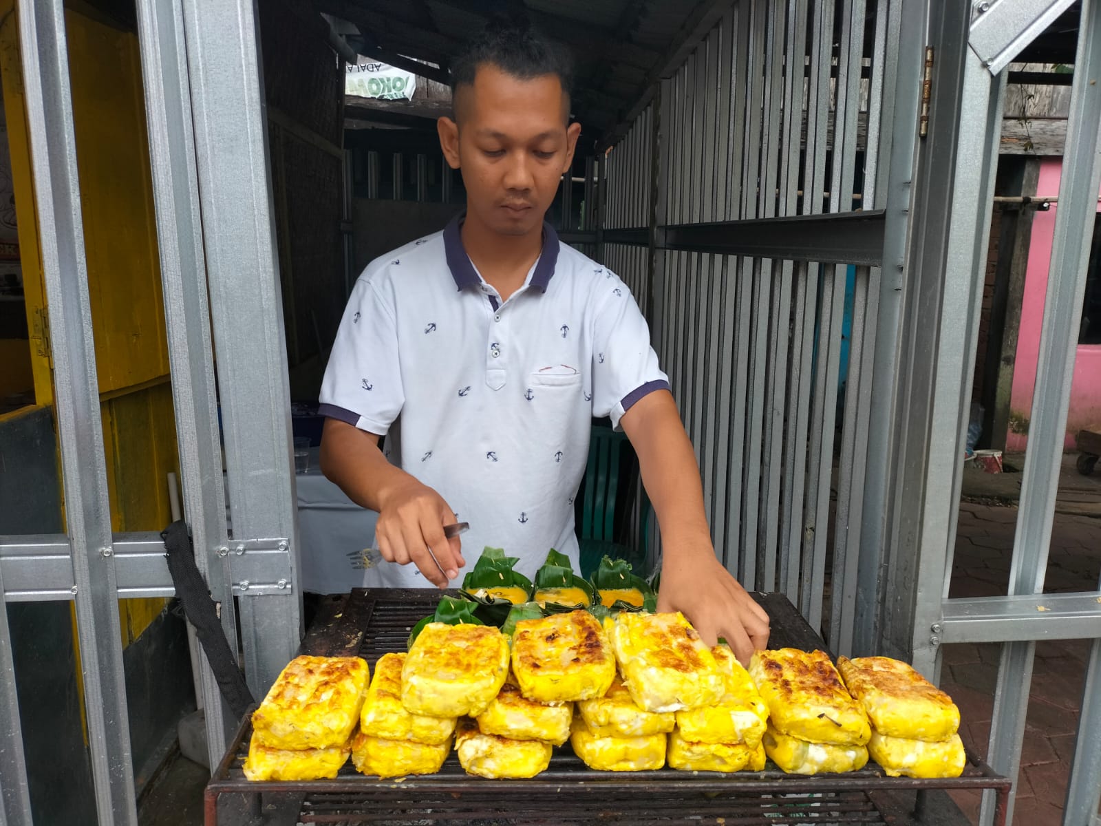 Ada Pempek Lenggang dengan ciri khas dibakar secara tradisional dengan daun pisang, dan di atas bara api.